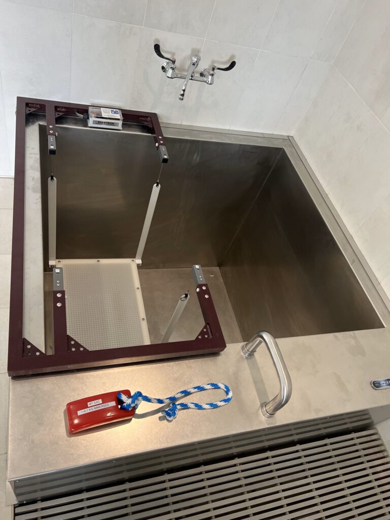 Shower facilities should be available adjacent to the wet room so that subjects can shower and enter into, or exit from, the water tank.